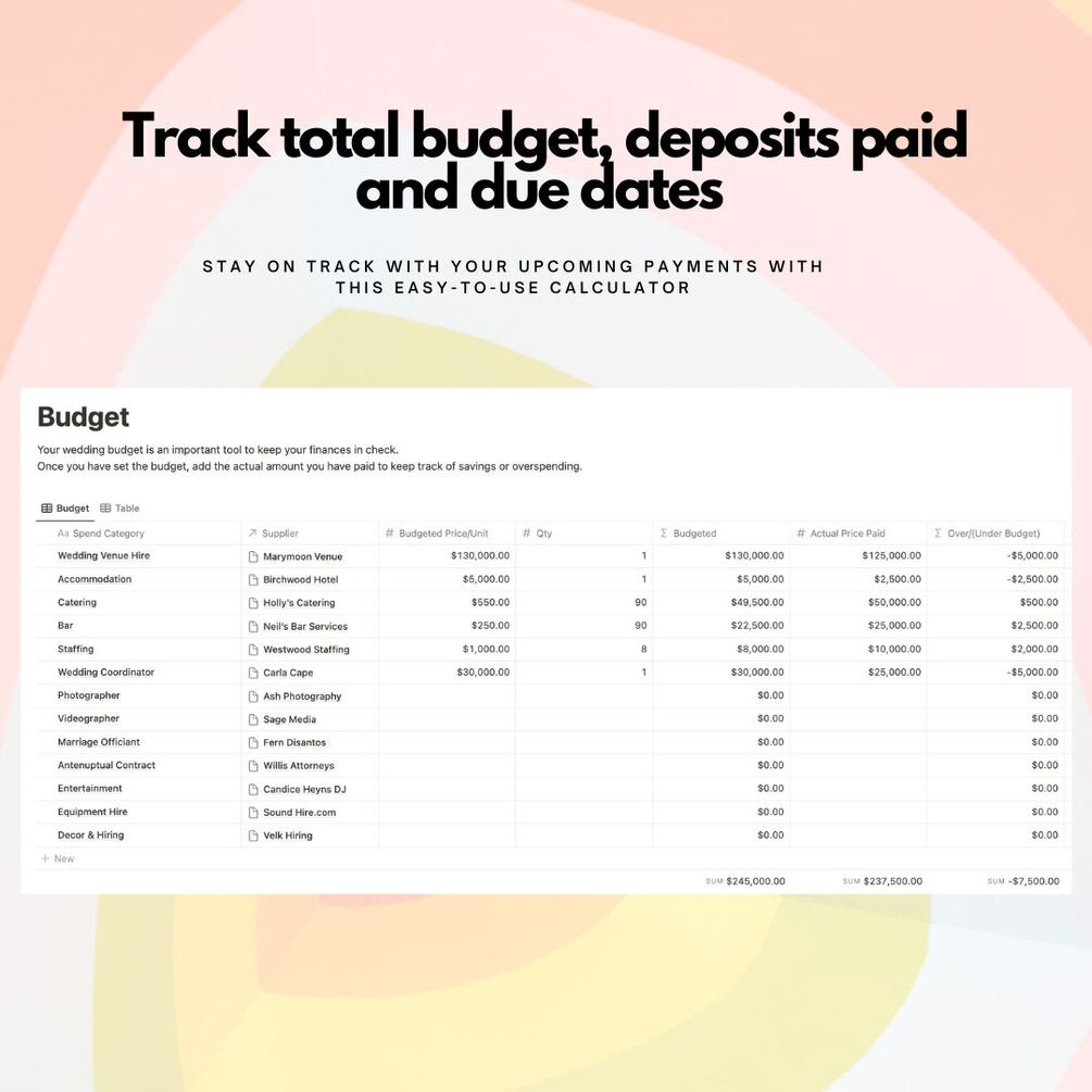 By keeping an organised and up-to-date budget, you can confidently make informed decisions and plan your dream wedding.